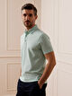 Męskie polo w kolorze beżowego melanżu. Ozdobne przeszycie przy kołnierzu.